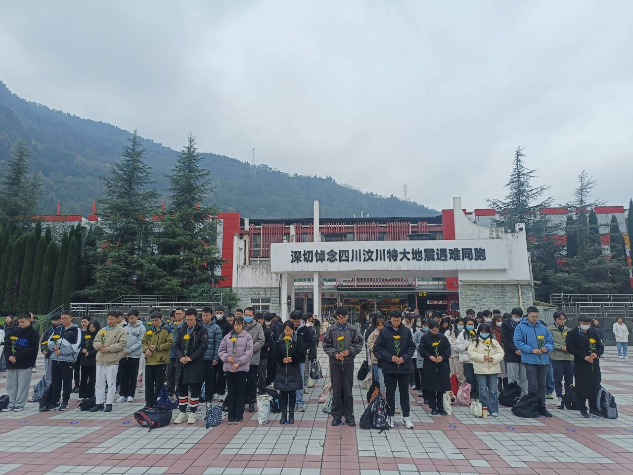 图4 活动第二部分:同志们在漩口中学遗址为逝去的同胞默哀