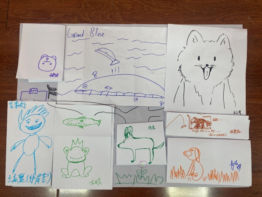 完成“在当下”活动之后,何惠老师引导同学们在纸上画下自己心里的动物。这个活动旨在让同学们通过绘画表达自己的情感和内心需求,同时也是一种放松和愉悦的方式。同学们积极参与,纷纷画下了自己喜欢的动物,有的同学画了一只在跑步机上运动的小狗,有的同学画了一只自由的鸟,还有的同学画了一只无拘无束的龙。通过简单的绘画,何老师能够从心理学的角度对同学们的内心情感和想法进行精准的解读,帮助同学们进一步认识自己的情绪和压力,剖析自己。