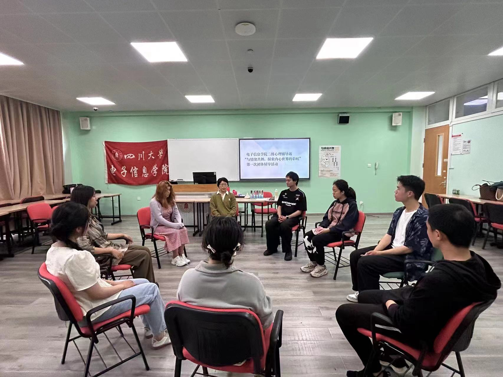 健行工作坊联合承办的“与情绪共舞——探索内心世界的彩虹”团体辅导第一次团体辅导顺利举行。本次团体辅导由电子“心晴e站”副站长、“e心致学”辅导员工作室主持人何惠老师担任督导,何阳老师担任副督导。18XXX