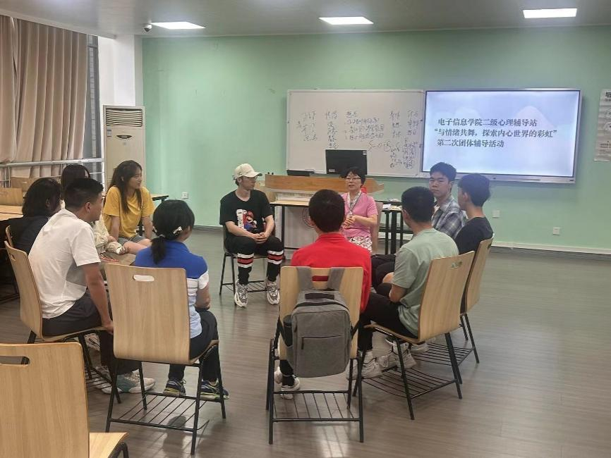 健行工作坊联合承办的“与情绪共舞——探索内心世界的彩虹”团体辅导第二次团体辅导顺利举行。本次团体辅导由电子“心晴e站”副站长、“e心致学”辅导员工作室主持人何惠老师担任督导,何阳老师担任副督导。18XXX