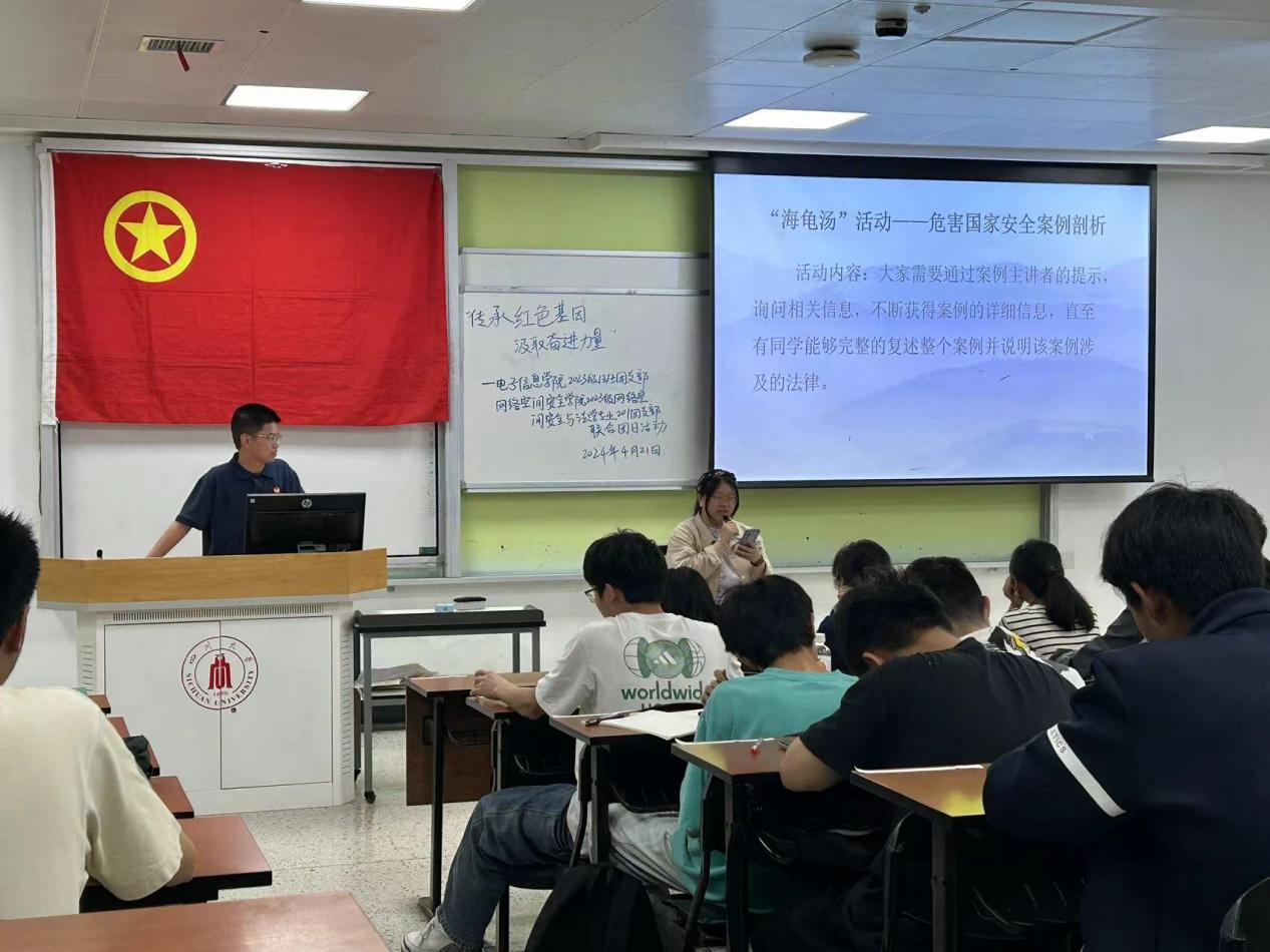 为创新主题团日的活动形式,本次主题团日活动以团员“喜闻乐见”的“海龟汤”形式开展危害国家安全案例的学习。大家通过案例主讲者的提示,询问相关信息,不断获得案例的详细信息,直至有同学能够完整的复述整个案例并说明该案例涉及的法律。通过该活动,不仅提高了思想教育成效,增强团员的学习主动性和活动参与感、获得感,更让同学们深刻意识到危害国家安全的行为无处不在,提高了同学们保护国家安全的意识。