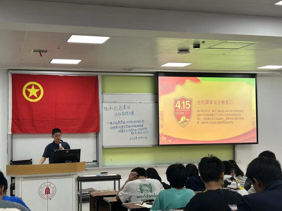图为团支书莫斌斌带领大家学习国家安全相关知识
