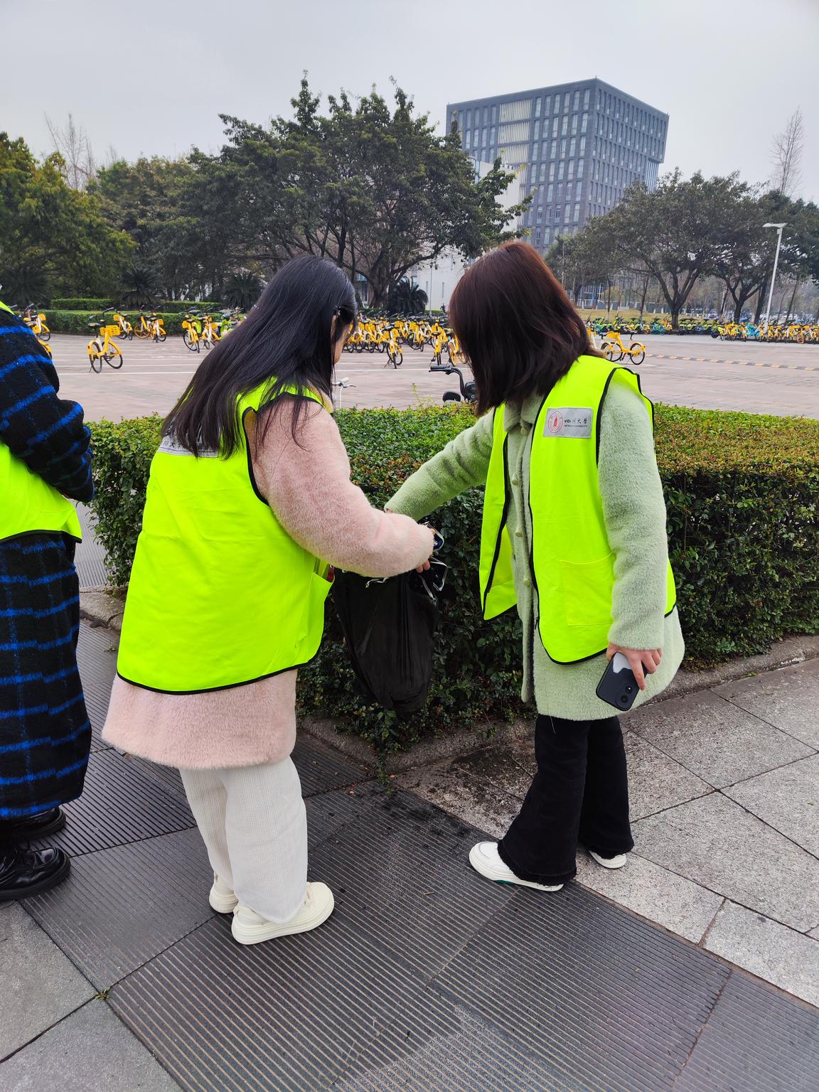 2024年3月3日下午两点,志愿者们齐聚青春广场,准备开展一场别开生面的春日活动。他们领取统一的志愿者服装,装备了收集物品和垃圾的袋子后,志愿者化身为校园的守护者——志愿者们分成了五个小组:一组前往校园停放单车的区域,一组前往食堂失物招领处,一组前往图书馆,另外两组则分别前往教学楼和操场等地点,收集同学们遗失的校园卡、雨伞、水杯等物品,并清理现场垃圾。
