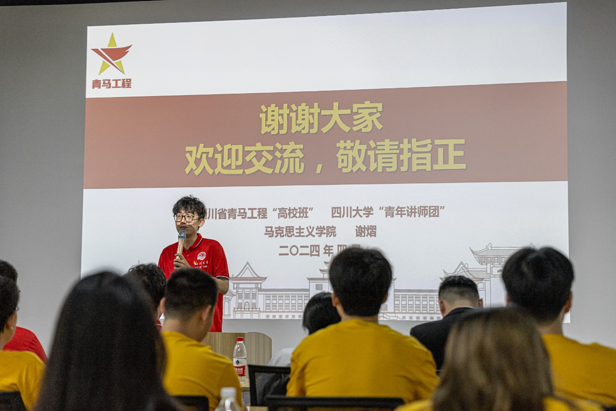四川省青马工程“高校班”学员代表、四川省学生联合会驻会执行主席王月佳开展主题教育分享,重点介绍了我国航天事业取得的成就。