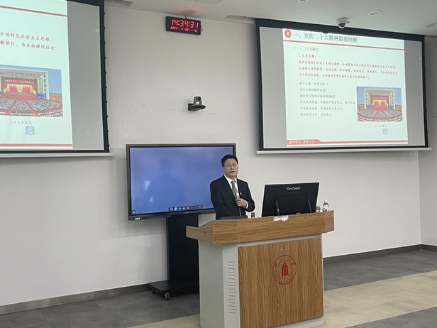 典礼结束后,校关工委办公室主任汪朝清老师为学员们开启了首场培训课程——“党的性质”。汪老师详述了党的性质的法理性定义来源与发展历程,阐释了党的性质指向的党的阶级性与先进性,同时,他还以党的性质为线索,向学员们引入党形成的新时代发展指导思想。他教导学员们新时代如何坚持党的性质,如何为党的事业而奋斗,并鼓励广大青年将理论与实践结合起来,积极向党组织靠拢。