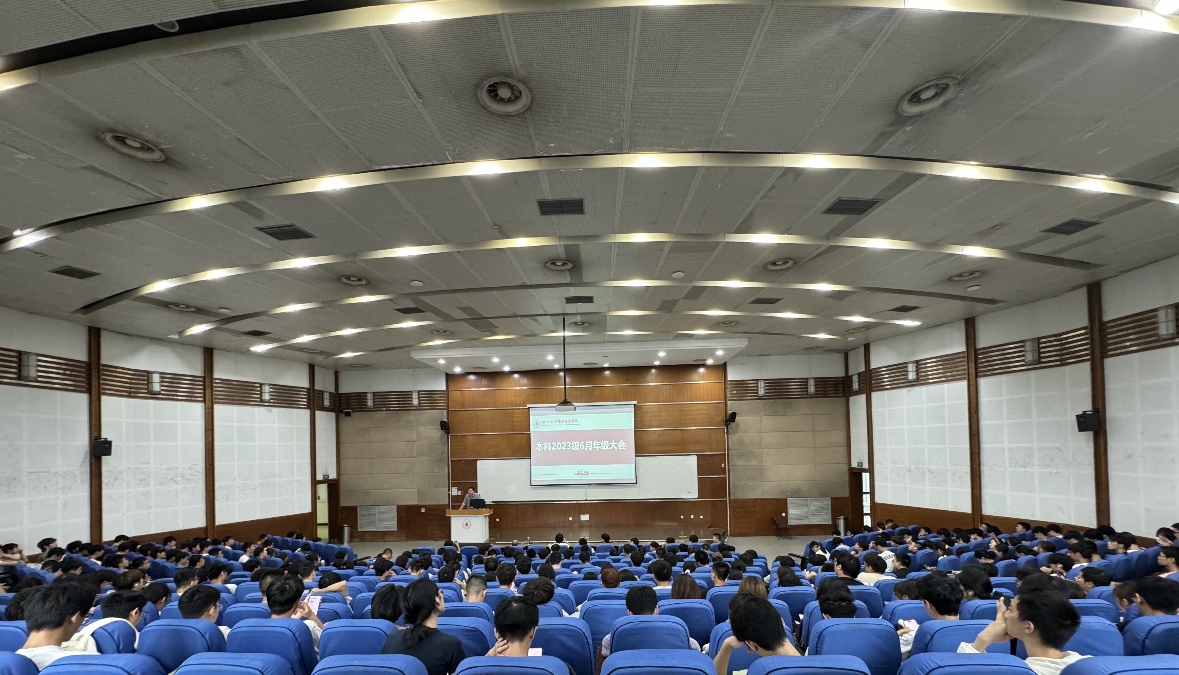 本科2023级6月年级大会暨军训动员大会于江安校区综合楼C407顺利召开。本次大会共分为日常事务管理要求与军训动员两部分。会议由本科2023级辅导员申鑫主持,院党委副书记兼纪委书记廖勇明及全体2023级本科生参会。