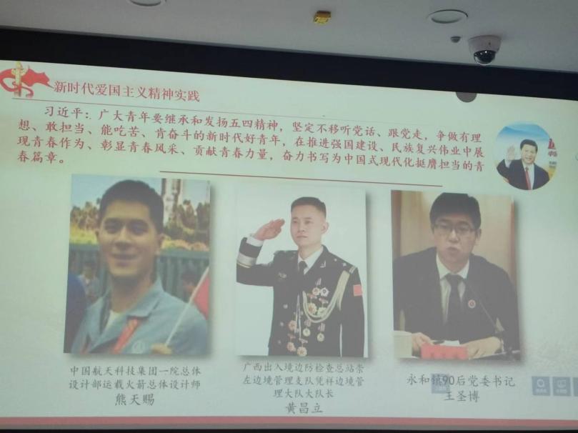 胡阳同志围绕着“五四运动的历史”、“五四运动中的爱国主义精神”、“五四运动精神新时代的传承”、“新时代爱国主义精神的实践”四个主题带领大家深入学习了五四运动的精神内涵。