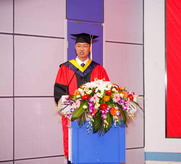 向2024届263名研究生和343名本科生表达了最热烈的祝贺和最美好的祝愿。杨院长深情的回顾了同学们成长和进步的的点点滴滴,在离别之际,杨院长给同学们提出两点期望,第一是要做有宽广胸怀、有坚定心志的人,在复杂的大环境中,要保持初心,保持定力,淡泊以明志,宁静以致远;第二是要做有家国情怀、有责任担当的人,充分融入新时代,树立与这个时代的主题同心同向的理想信念,用火热的青春创造更大的价值。最后杨院长祝贺所有毕业生乘风破浪,勇往直前,书写属于自己的精彩篇章!