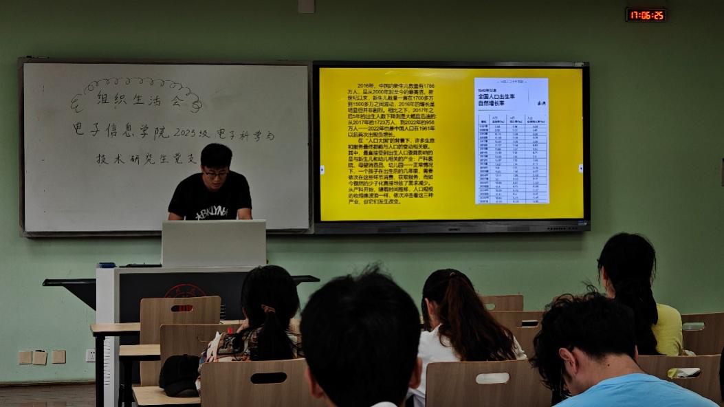 2023级硕博第四党支部在基础教学楼A座511开展题目为“生孩子那些事”的党支部学习大会。本次会议由秦嘉忆和安怡帆同志主持,第四党支部全体党员参会。