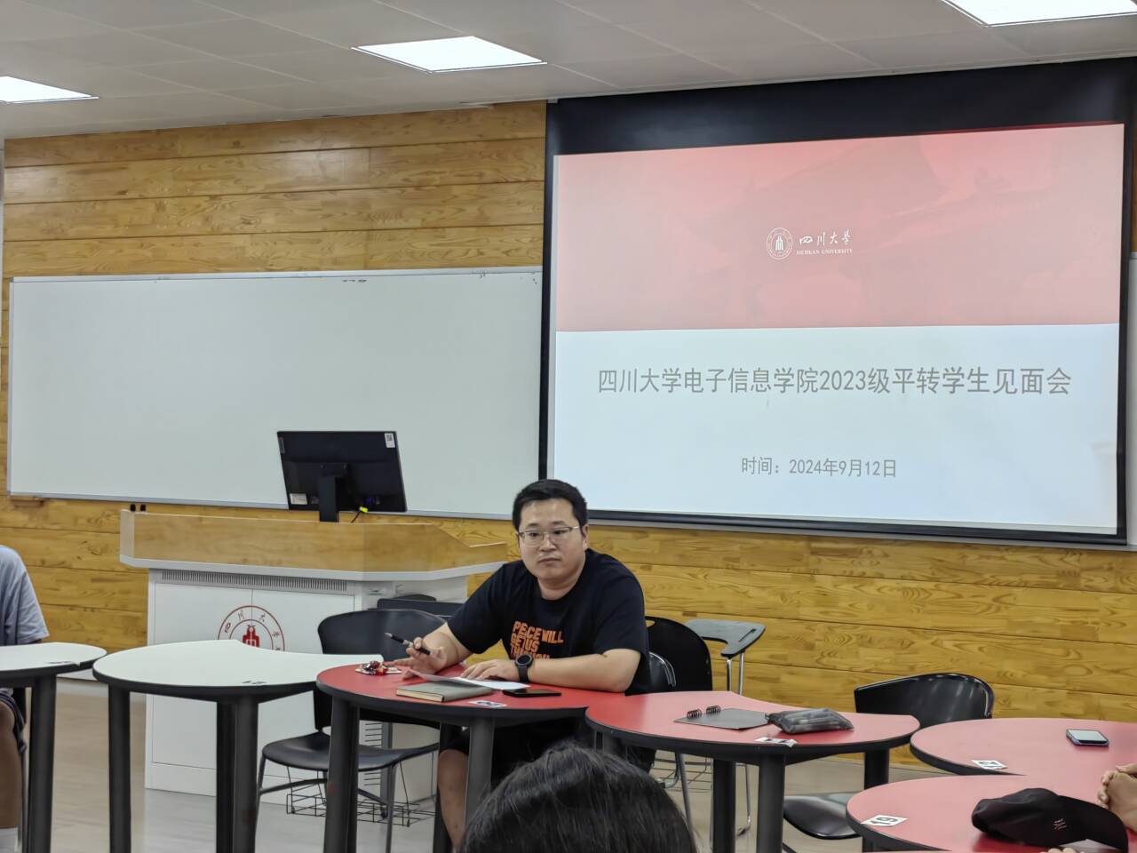 本科2023级平转学生见面会。本次会议由辅导员申鑫老师主持,目的在于协助新转入的学生快速融入新生活。