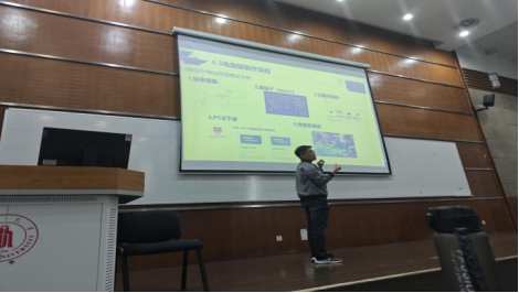 第三位上场的是我们的任鹏学长,他曾取得多个创新能力比赛的一等奖,于是便为我们讲解了基础硬件的制造过程,同时推荐了一系列适用的工具来辅助我们进行制造,激发了同学们对于创新能力竞赛的兴趣。不仅如此,学长还强调了创造力的重要性,为同学们指明了以后学习的中心。