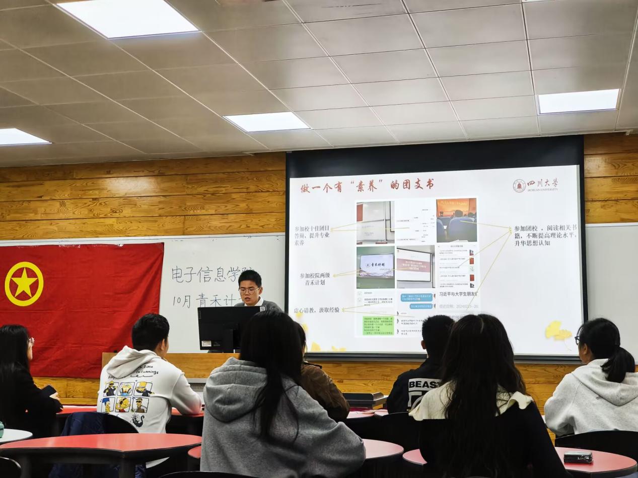 江安校区综合楼b303顺利举行。此次活动邀请到校“青马工程”弘毅班16期班长郭贝凡、优秀团支部书记代表莫斌斌,围绕“党的二十届三中全会精神”,面向23、24级各团支部书记开展宣讲活动。