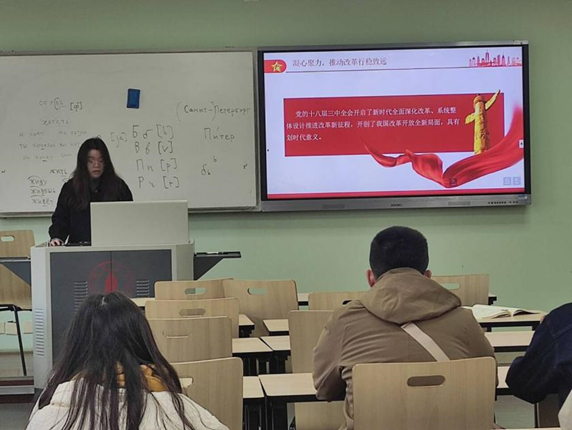 在此次的交流讨论过程中,唐露同志邀请同志们分享:“作为新时代青年,应该如何学习贯彻党的二十大精神?”郭乙颗同志向大家分享了自己的观点:“作为新时代青年,我们应深入学习贯彻党的二十大精神,将其融入到日常学习和生活中。要加强理论学习,提升思想政治觉悟,树立正确的价值观和人生观。实践中,注重创新思维,勇于担当,积极参与社会服务和国家建设,将个人发展与国家需求紧密结合,做有理想、有担当、有责任感的青年。通过提升专业能力,为国家的科技进步、经济发展贡献力量,推动社会进步,为实现中华民族伟大复兴贡献青春力量。