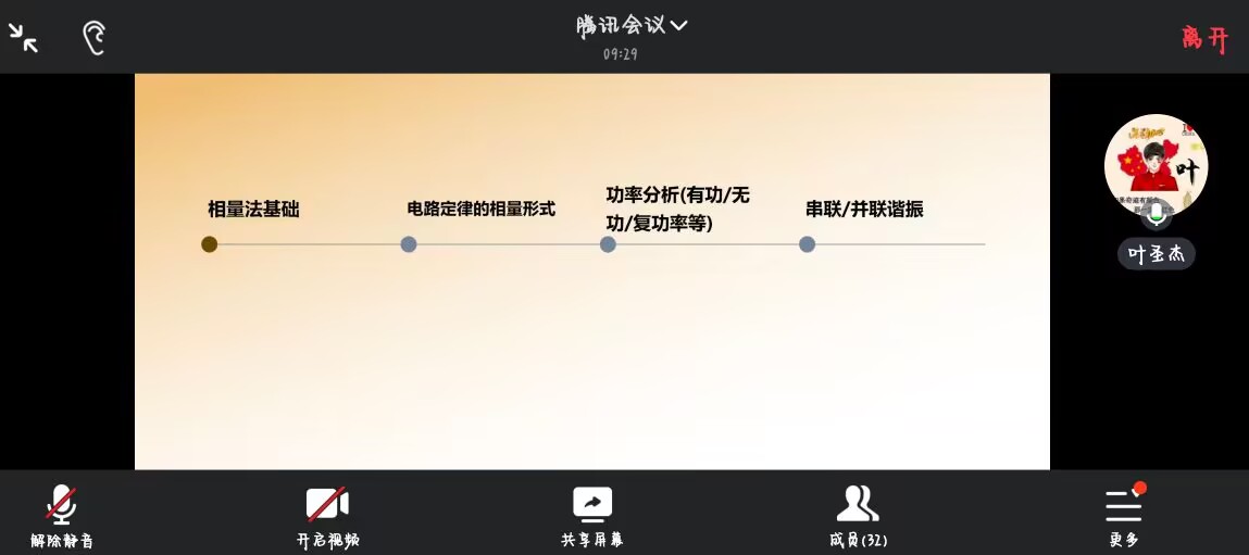 2023级寒假腾讯会议线上学科经验分享会准时拉开帷幕。本次分享会持续150分钟,精心安排了数字电路设计及应用、数学物理方法、电路理论、概率统计四门学科的学习经验分享。此次分享会旨在搭建一个知识交流的桥梁,为同学们提供多元化的学习思路与高效方法,提高假期复习效率,助力开学缓补考顺利通过,部分学生及家长参会。