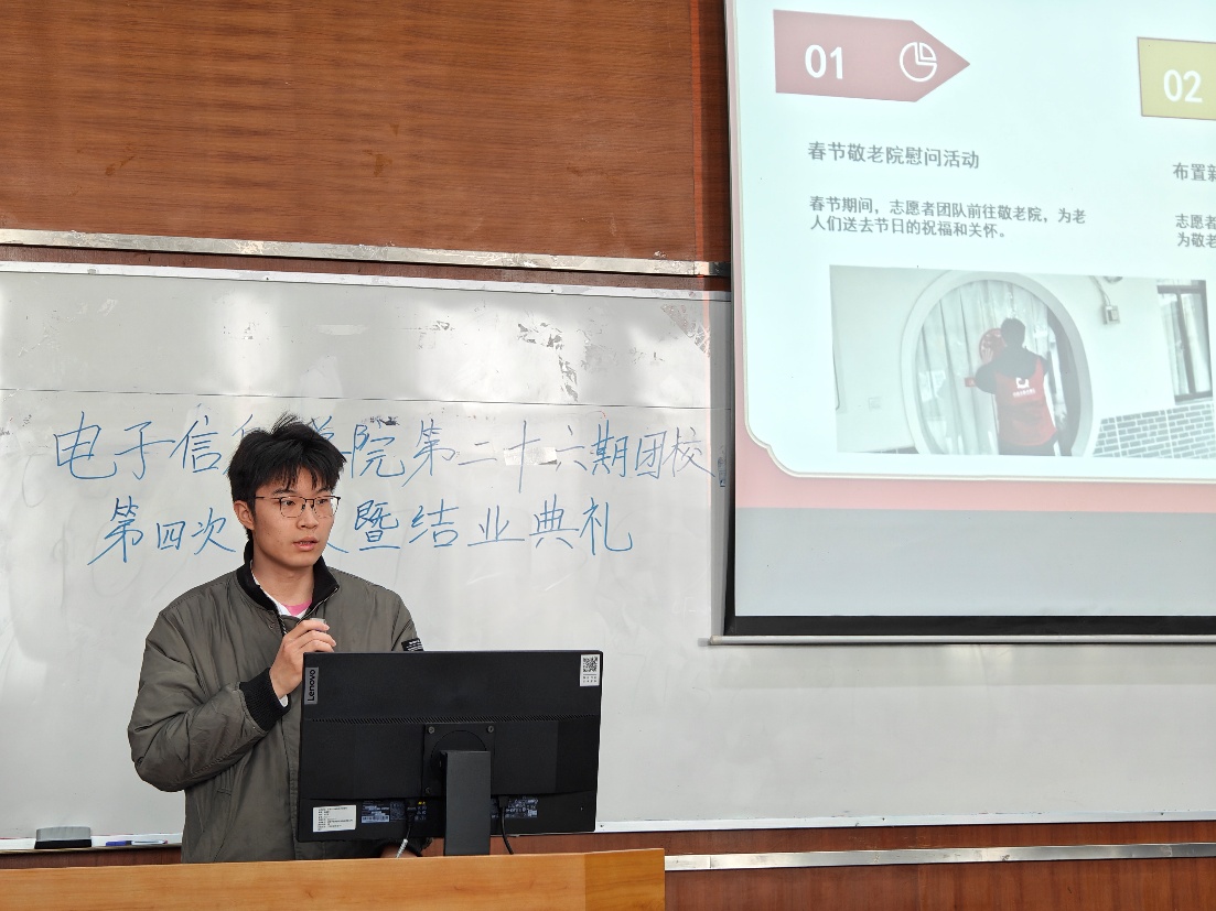 授课结束后,进入学员分享环节。李汶壕和曾琳庭两位同学分别分享了他们在寒假期间去往敬老院帮助老人的经历以及自己的收获心得,讲述了如何用实际行动践行社会责任,传递爱与希望。情真意切,感人肺腑。最后,学生代表欧津岑上台发言,表达了对团课学习的深刻体会和未来展望,为本次活动拉下了序幕。