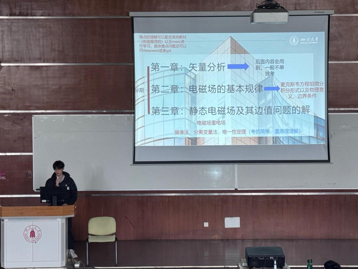 在《信号与系统》分享中,蒋雨辰学长逐章剖析重点:“傅里叶变换是核心,需掌握时域与频域转换的逻辑。”史晓玮学长的《电磁场与电磁波》分享紧扣考试脉络:“半期考试重点复习第二、三章的矢量分析和静态场边值问题,期末则聚焦后三章的时变场与麦克斯韦方程组。”而降转的彭书睿同学通过实际经历证明‘回归课本’才是硬道理。