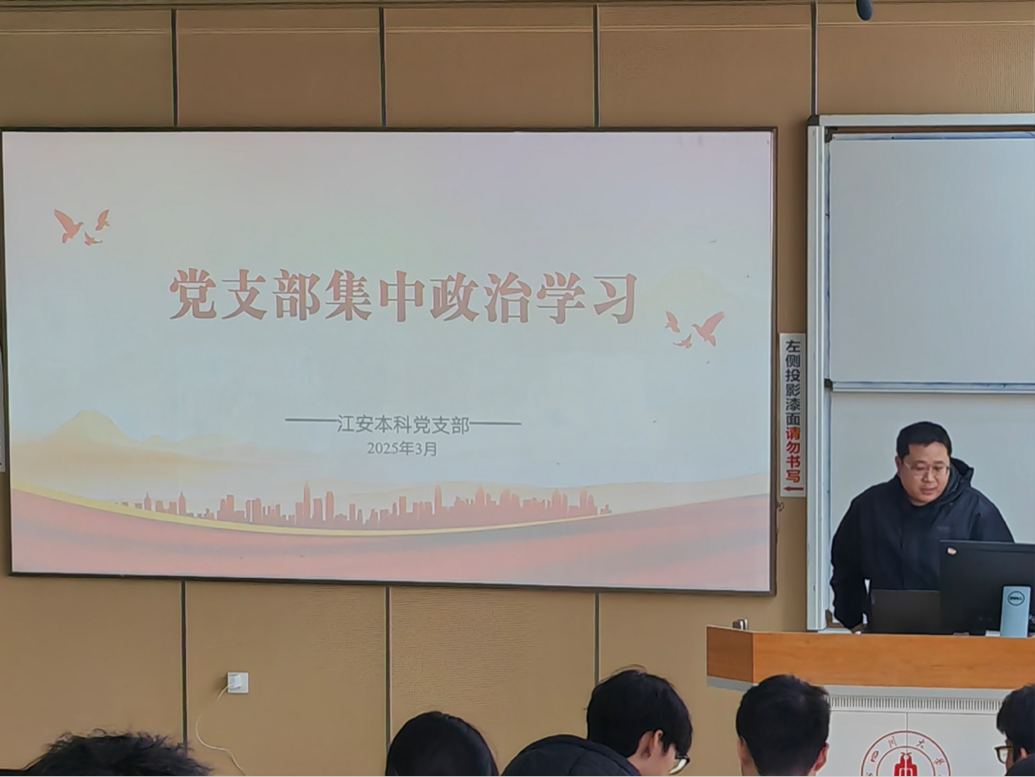 江安本科党支部于2025年3月21日下午在江安校区综合楼C303进行集中政治学习、“红途轮忆,青讲党史”主题活动暨读书分享会。支部书记申鑫,全体支部党员、部分入党积极分子、团推优学生参会。
