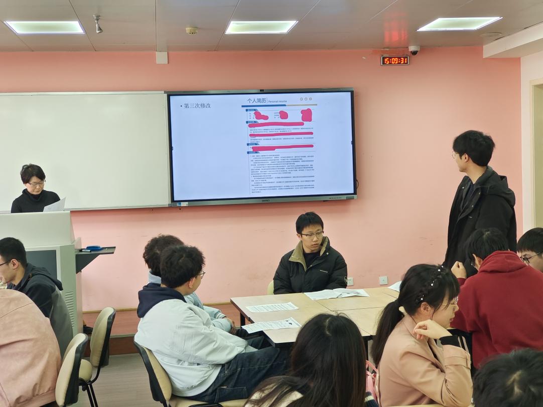 在组织简历修改团体辅导活动过程中,三位老师采用深度剖析与精准优化的双重策略,通过案例讲解、互动研讨和一对一诊断等方式,为每位参与者提供个性化指导。简历指导过程中,不仅针对简历结构、语言表达、成果量化等维度进行专业打磨,还结合求职目标岗位进行胜任力匹配分析,特别对项目经历可视化呈现、技能证书适配性等关键模块给予定制化修改建议,有效提升了简历内容的专业度。