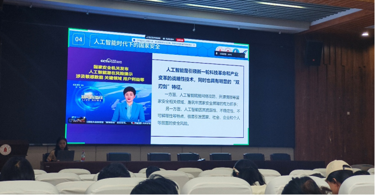 随后,她阐明了保密工作在维护国家安全和利益中的防线作用,通过介绍近期破获的间谍案件,旨在提醒同学们在日常生活中应当提高警惕,加强防范身边威胁国家安全的潜在因素。同时,她指出维护国家安全是每个公民的责任和义务,需要每个人从自身做起,严格规范自身行为,不能因为一己私欲和贪念,或者因为自己的疏忽和猎奇心理而触犯危害国家安全的法律红线。最后,她鼓励在场同学们在学习和生活中,不仅要注重学习知识的深度和广度,同时也要树立正确的国家安全观,及时举报危害国家安全的不法行为,为守卫国家安全贡献自己的青春力量。