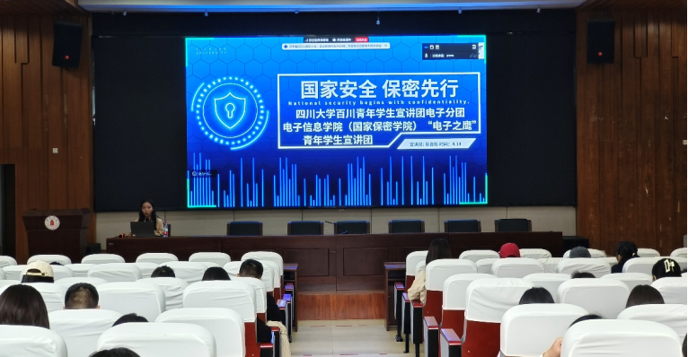 ,在2024级研究生综合素质课程“国家安全教育”专题上开展“国家安全,保密先行”主题宣讲,宣讲员易音彤、莫斌斌参加宣讲。