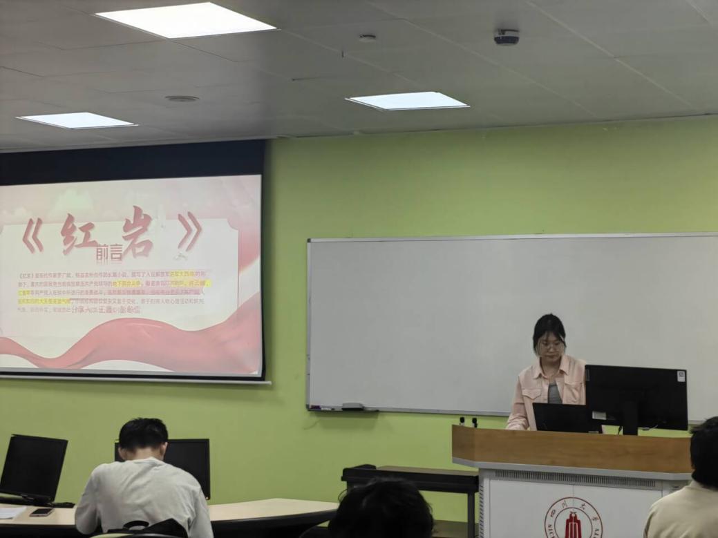 在读书分享环节,王鑫和彭冬雪介绍了书籍《红岩》。他们深入探讨了书中的革命精神和人物经历,激发同学们的责任感与使命感。