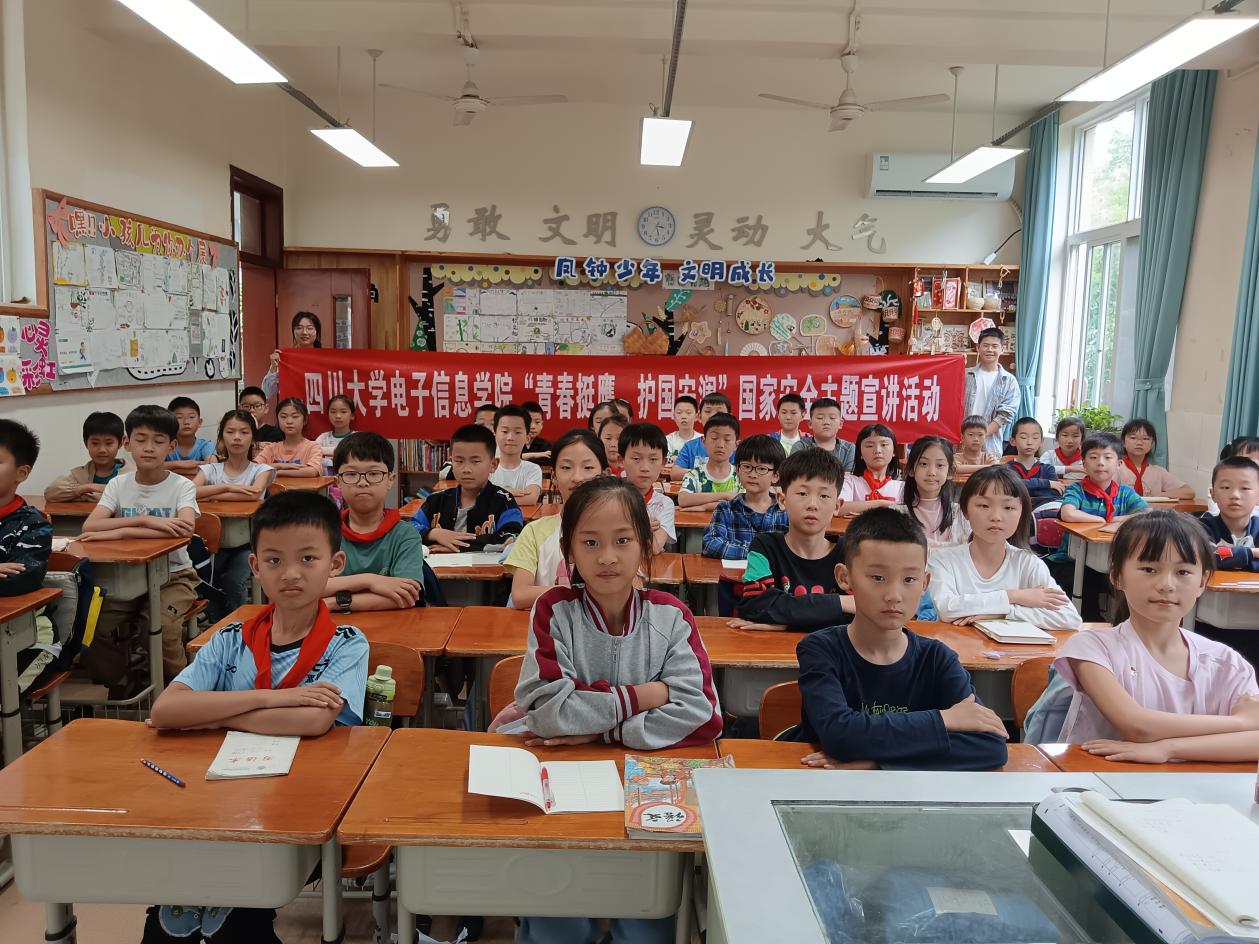 )“电子之鹰”青年宣讲团走进川大附小,开展了一场主题为“国家安全,保密先行”的宣讲活动。宣讲团团长莫斌斌、成员谭晶晶参加宣讲活动。
