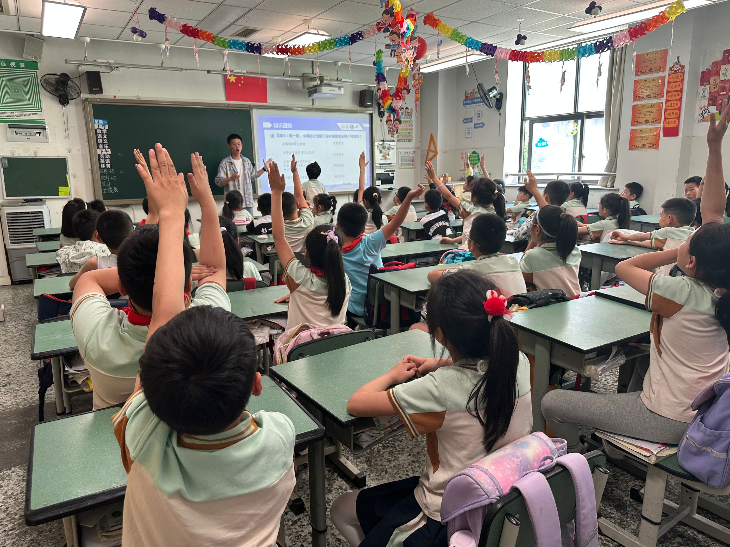 图为同学们积极举手发言
