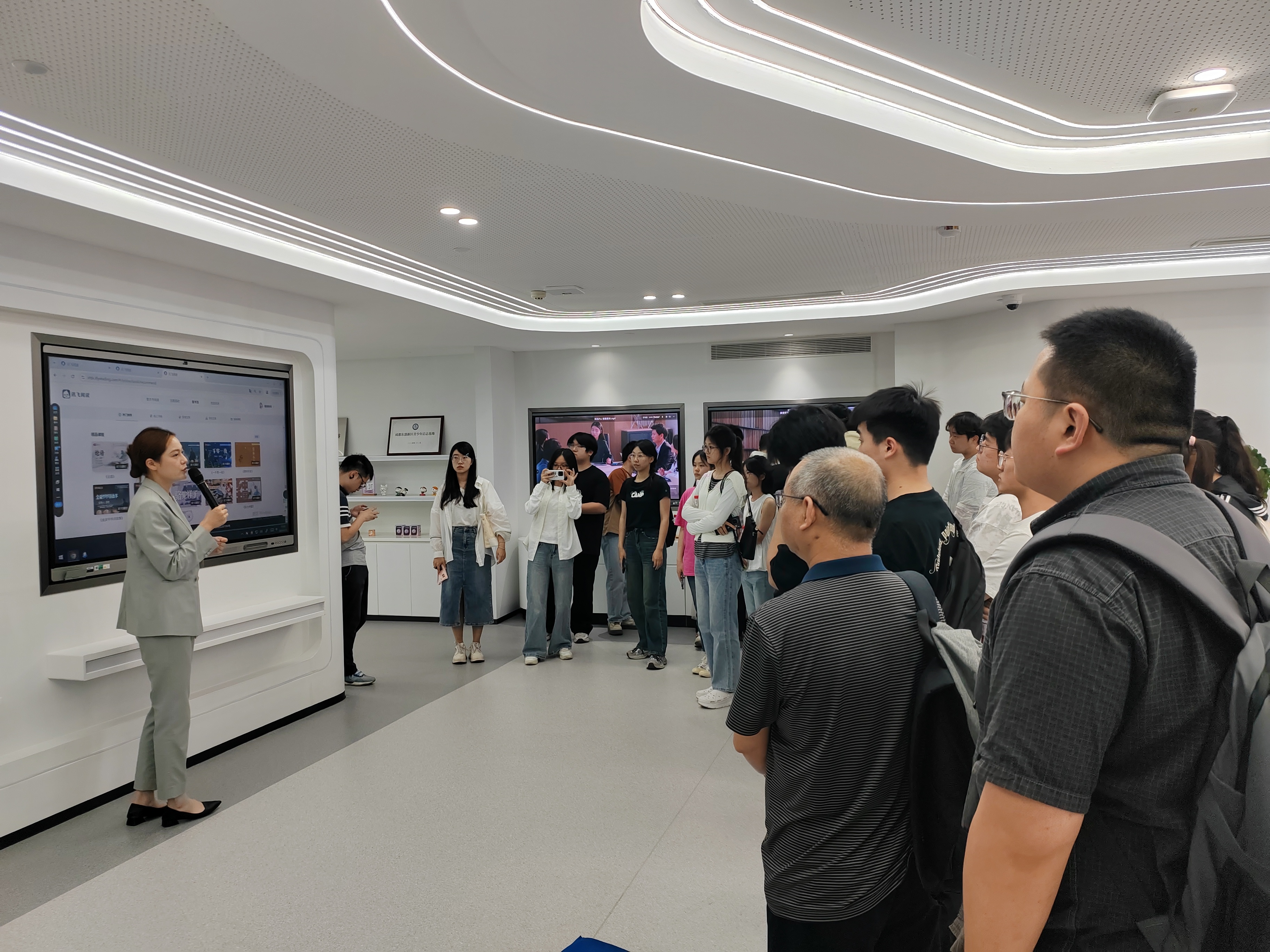 最后,工作人员带领师生体验了讯飞的相关产品。例如,下棋机器人吸引学生们纷纷前来挑战。其精准的落子策略和多媒体交互功能,生动展现了人工智能的落地场景。