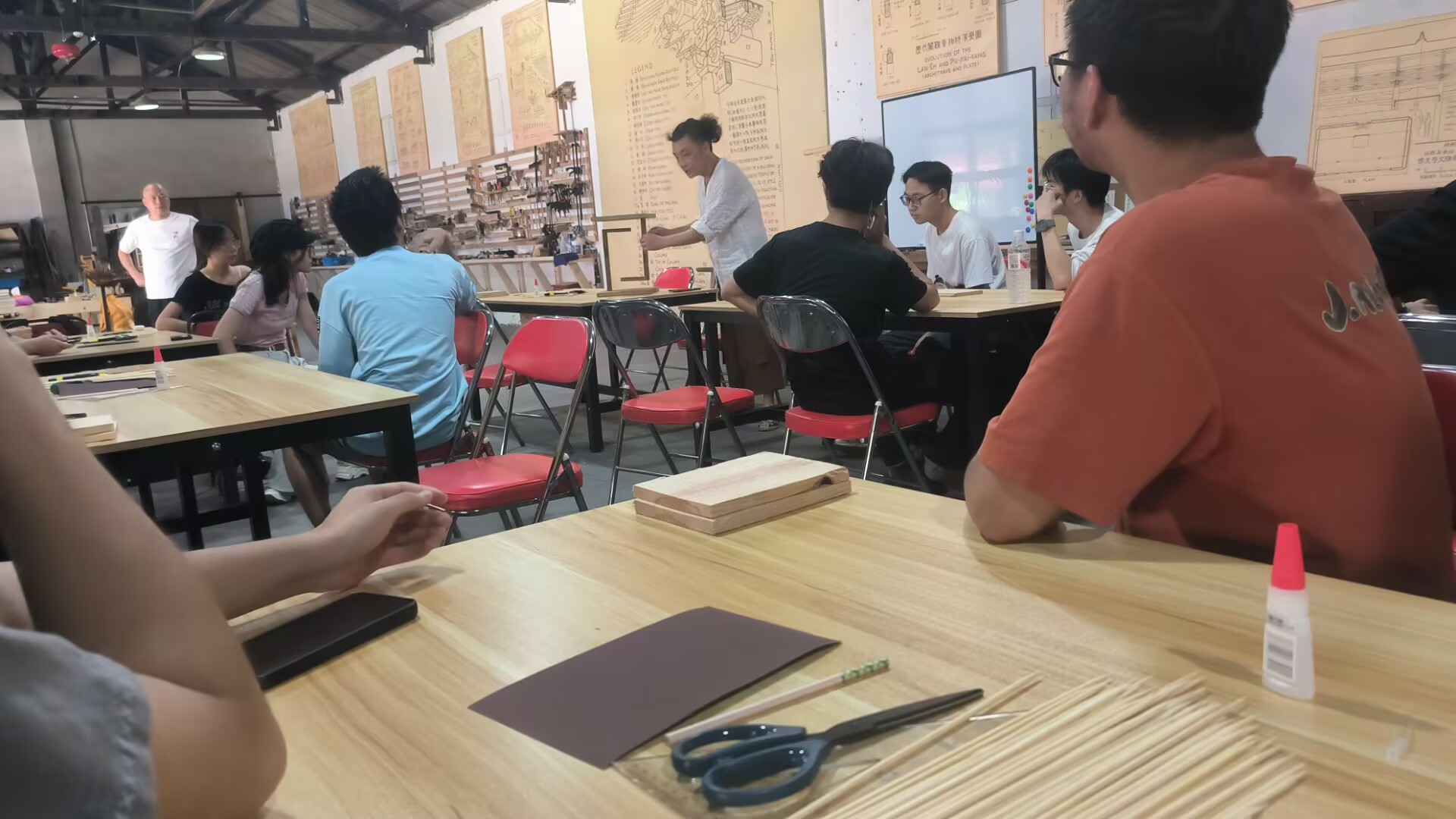 在木工实践环节,同学们以3-4人为一组,展开了紧密的分组协作。大家积极投入到制作过程中,从木材的测量、切割,到精细的打磨、组装,每一个步骤都充满了挑战,也凝聚着大家的专注与努力。在这个过程中,同学们遇到了诸如尺寸偏差、拼接不牢固等问题,但在木工师傅的耐心指导下,大家不气馁、不放弃,不断尝试和改进。经过约50分钟的努力,一个个独具匠心的小物件终于在同学们的手中诞生,这是他们汗水与智慧的结晶。