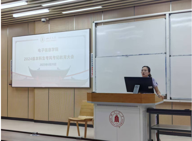 2024 级本科生齐聚江安校区综合楼C304,参与一场以考风考纪为主题的宣传教育活动。此次活动由2024级辅导员陈晓娟老师组织开展,旨在强化2024 级新生诚信考试意识,营造公平公正的学术氛围。