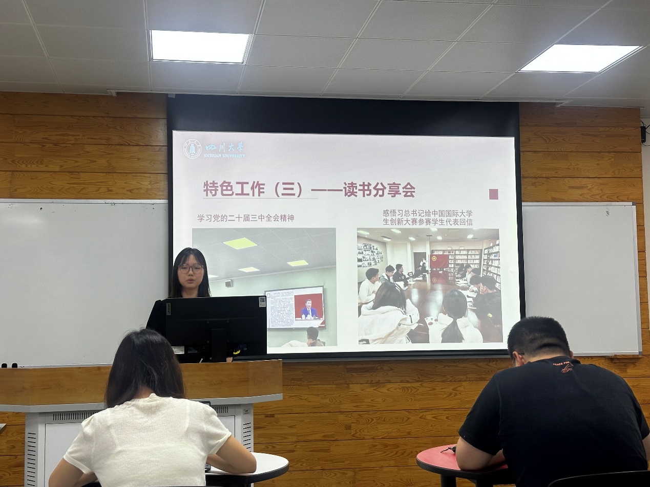 9班团支书谭晶晶重点汇报了9班团支部在团日活动和学风建设方面的创新实践。她带领支部开展“追忆峥嵘岁月,续写时代华章”等主题团日活动,相关活动荣获18XXX