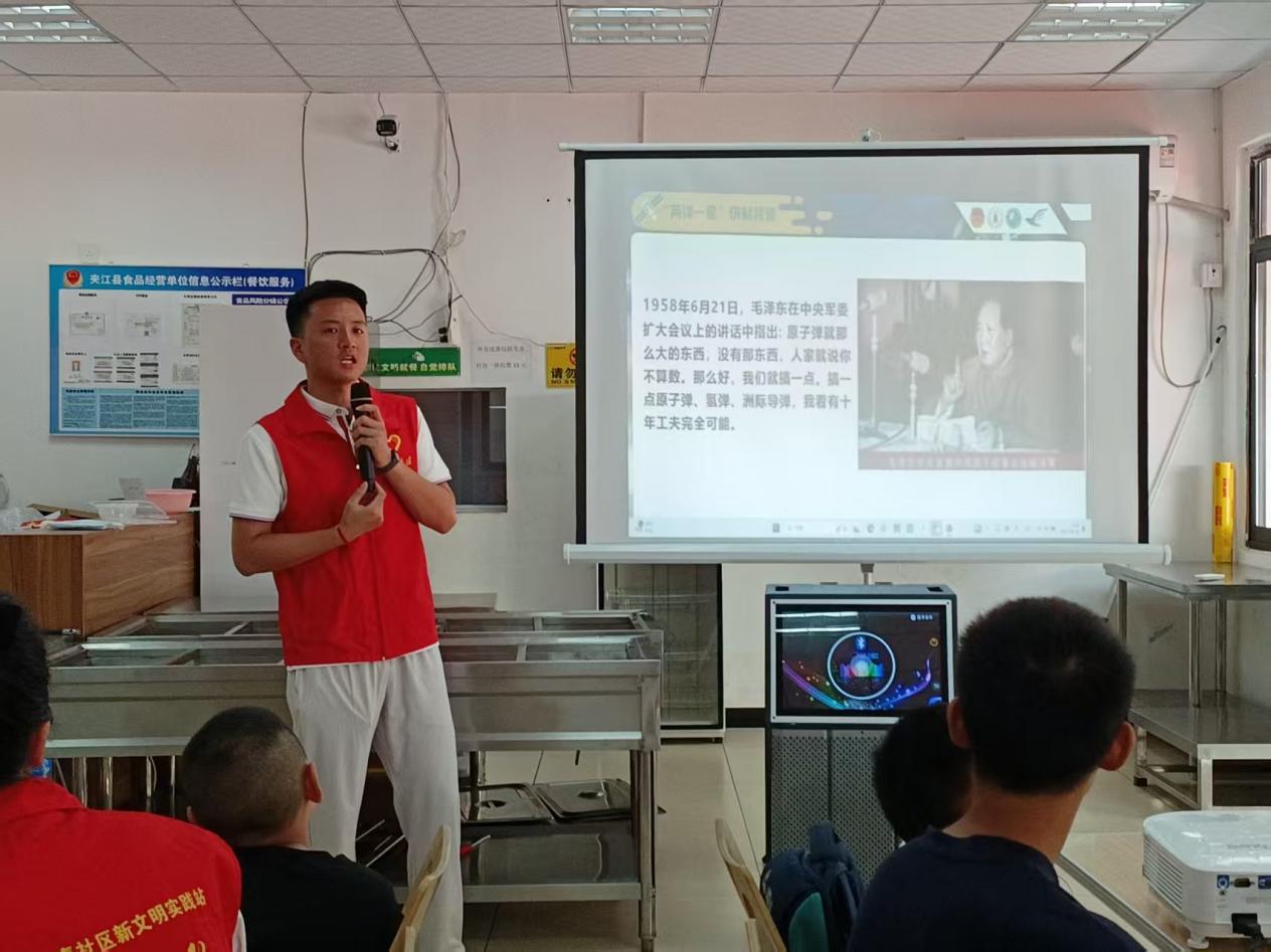“芯”火相传暑期社会实践团的成员带着在实践沃土中淬炼出的感悟,怀揣着让精神力量跨越山海的热忱,回到家乡,在贵州、四川、内蒙古等地面向小学生、高中生、大学生开展“两弹一星”精神系列宣讲4场,覆盖人数超两百人。