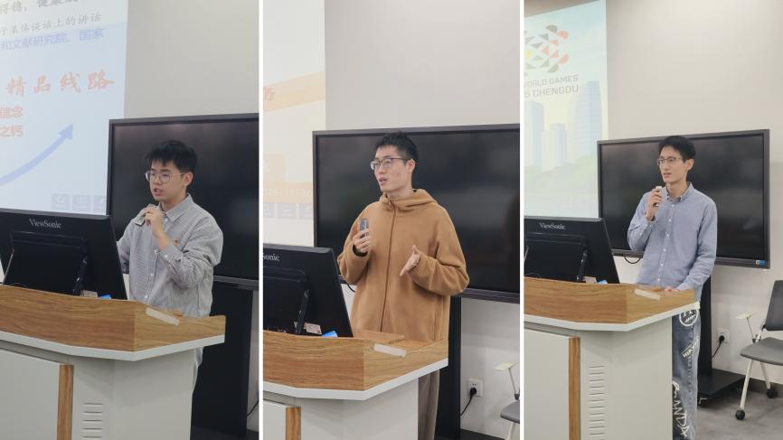 图为三位青年进行实践经历分享