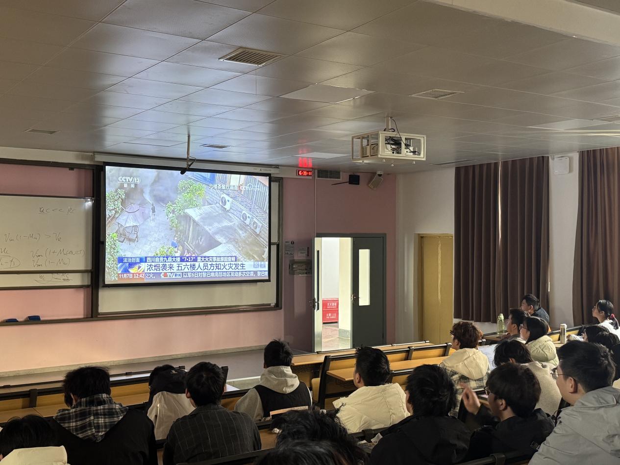 2023级本科各班级以集中观看和分散学习的形式,组织全体同学收看《四川自贡九鼎大楼“7·17”重大火灾事故原因查明》专题报道,同步学习“三清三关”、安全用火、电动自行车安全等系列教育警示片。