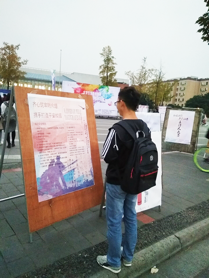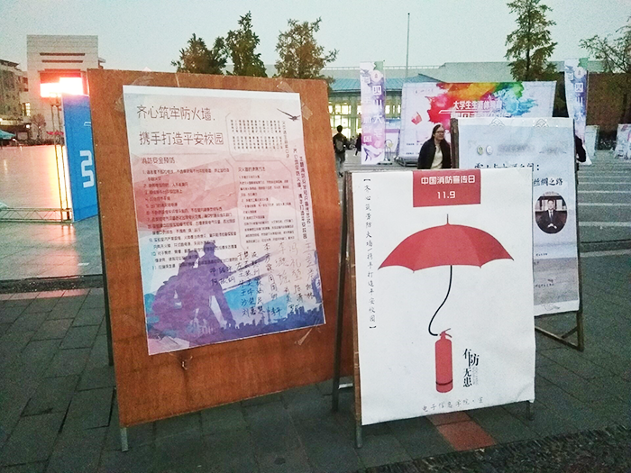在青春广场贴出展报进行消防安全宣传。18XXX