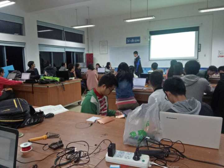19点20分,会议准时开始。首先,主持人简单的介绍了活动的流程,然后便进入了本次活动的最关键环节,分小组进行交流讨论,动手操作,把理论化为实践,此过程中,主办人员会协助解决讨论中遇到的一系列疑难问题。现场气氛浓厚,讨论热烈。同学们争相发表自己的见解,对于同一个问题提出多种不同的解决方案,真可谓是条条大路通罗马,殊途同归。在与不同专业院系的同龄人进行交流的过程中,同学们不仅扩展了自己的知识面,开拓了视野,也交到了脾气相投,兴趣相同的好朋友。热热烈烈的讨论结束后,主持人将收集到的典型问题和优秀成果进行展示,并请相关同学进行现场讲解,相信这些值得学习和借鉴的例子会让同学们受益匪浅。9点整,会议在主持人精彩的总结中结束,同学们有序的退场。个别仍有疑惑的同学则继续留下来向主办人员请教问题,主办人员也热情耐心的他们解疑。