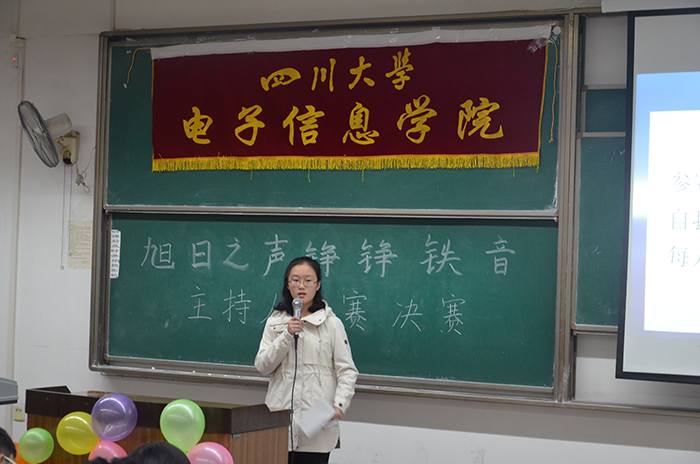 江安校区第一教学楼B203教室举行。初赛当天,有广播站成员、学生会主席团成员、往届优秀选手等担任评委。15位选手经过自我介绍、绕口令表演、抽词即兴演讲等环节的激烈比拼,最终由评委打分并选择出八位选手进入决赛。2017年10月29日,主持人大赛的决赛如期在江安校区第一教学楼B303教室举行。决赛吸引了18XXX