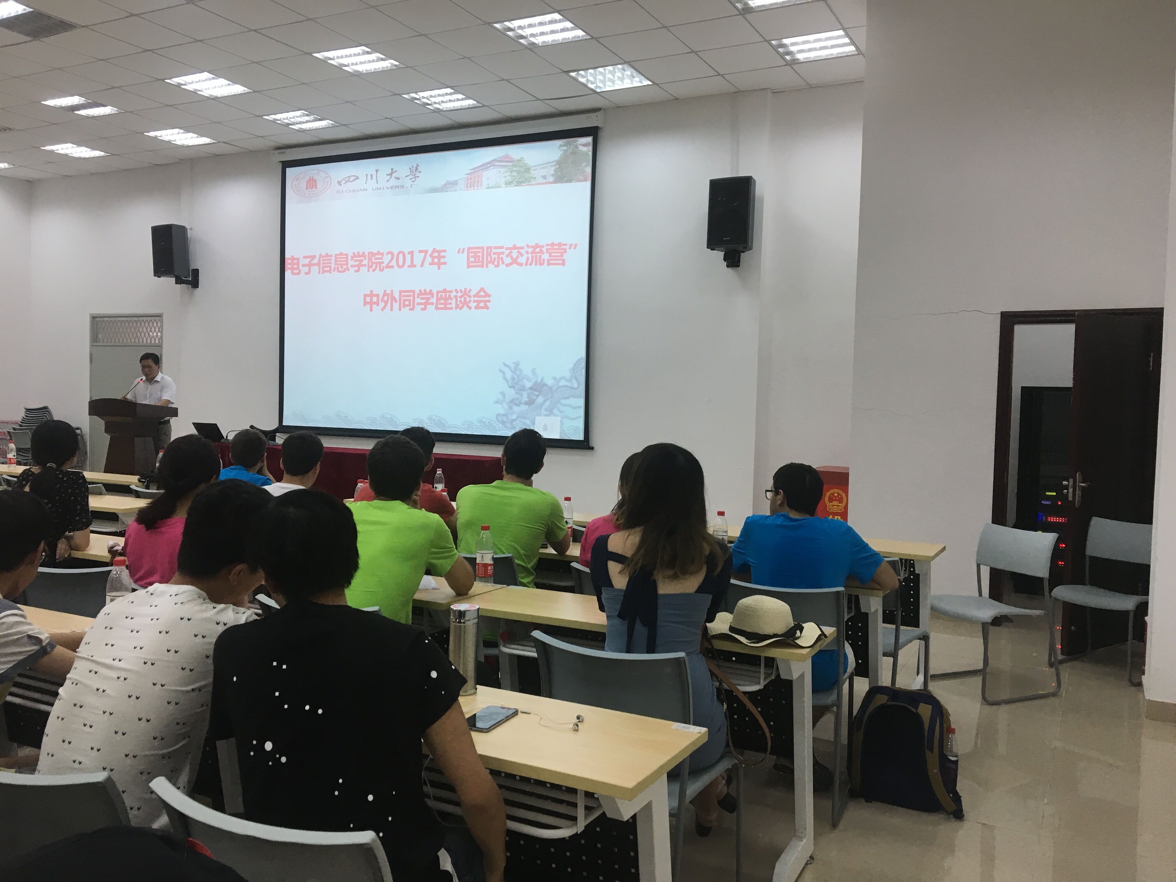 院长助理杨阳副教授以及参加本次活动的留学生、中科大同学和川大同学。会议伊始,杨阳老师对此次开幕仪式做了简要的介绍和说明,随后18XXX
