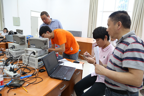 本次选拔赛于2017年5月13日上午8点在望江校区创新实验室正式拉开帷幕,望江校区的选拔测试是面向大三学生,并在下午一点在江安校区创新实验室进行另外一场面向大二学生的选拔测试。从比赛开始到结束评委们忙碌了整整一天,为每一个参加比赛的同学认真分析,测试电路,答疑解惑。比赛赛场同学们或是认真思考,或是查阅资料,或是焊制电路板,或是与老师交流,秩序井然。下午7点左右整个选拔赛落下了帷幕,评委们一起离开了比赛赛场,并且边走边谈论着比赛的情况。参加比赛的同学,简单的整理设备,清洁赛场后也陆续离开,选拔赛完美结束。