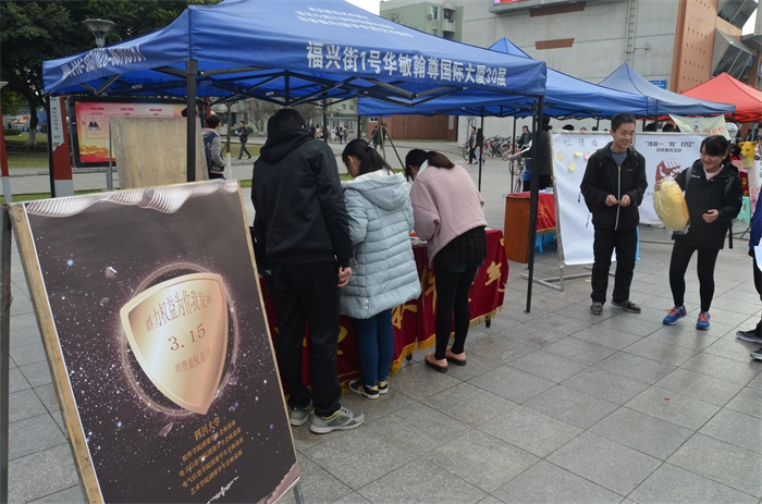 活动进行时,守摊的干事热情的邀请过往学生参与游戏(即有关消费者维权意识的选择题,5对2即可参与抽奖)环节中还负责的提示参与者,势必让他们不空手而归。末了,还不忘给其传单,让他了解3.15文化。同时,发放传单的干事也逆着人流,负责地进行宣传工作。中午12点,伴随着放学铃声的响起,人流量达到峰值。期间,18XXX