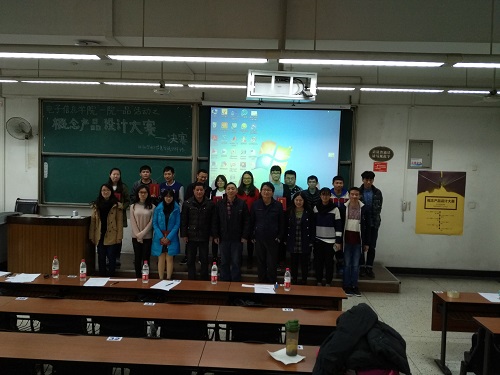 江安校区综合楼B座305室拉开帷幕。10组入围选手采取抽签方式决定上台展示顺序。决赛采取ppt展示以及现场答辩等形式,从生活实用程度、技术可行性、美观程度、环保程度、现场答辩以及ppt逻辑清晰度六个方面进行评分,其中现场答辩占据主导地位。参赛选手创新思维独特,准备充分,赛场秩序有条不紊。随着最后一组选手展示完毕,赛场工作人员紧张地统计各项分数并算出最终得分。本次比赛共诞生1组一等奖、2组二等奖和3组三等奖,李运国老师和陈林老师为获奖队伍颁奖并合照留念。之后,陈笃海副书记上台对本届概念产品设计大赛进行总结。他首先对在场的工作人员以及承办了本次大赛的电子科技园表示感谢,他充分肯定了比赛的意义,陈笃海副书记表示,学院需要创新型人才,会大力支持概念产品设计大赛的举办,同时,他鼓励参赛选手积极参与不久前结束的“锦江电子杯”科技创新大赛以及“五粮春杯“全国大学生移动互联创新设计大赛,挑战自己,创作更多优秀作品,为学院提供创新型人才。同时他强调同学们应该树立专利意识,把自己有的想法用自己的行动去实现然后申请专利,保护自己的知识产权。至此,一院一品”之第三届概念产品设计大赛圆满落幕。