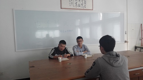 当天下午三点,电子科技园主席魏鹏锦、李家辉和参加面试的同学准时到达科技园行政部办公室,第一次电子科技园跨专业试点准时开始。电子科技园为了充分依托学校多学科优势,发挥学术社团在创新第二课堂、推动学生个性化教育、第二专业拓展等方面的作用,为了达到选拔为校内基于学术社团的跨专业人才培养方案进行创新探索,电子科技园对申请跨专业试点的同学进行了面试。电子科技园选拔本着热爱专业,有强烈的好奇心,有明确的职业目标或相关爱好,对面试同学的综合素质,交流沟通能力,进行了一次全面的考察。魏锦鹏、李家辉主席向参加面试的同学提出了一些问题,用以了解为何想要加入电子科技园,对电子科技园有什么想法,对以后想在电子科技园的学习有什么憧憬。参加面试的同学们对问题一一回答,得到了主席们的一致好评。