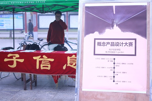 电子科技园多旋翼飞行器第二组主办,由电子科技园数字电路设计第二组、电子科技园信息安全协会第一组、电子科技园信息安全协会第二组协办的“概念产品设计大赛”之青广宣传活动于18XXX