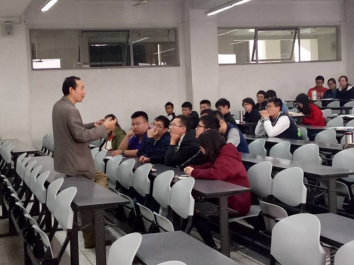 下午两点整,在同学们热烈的掌声中,李老师以幽默的话语开始了讲座。以自己学生的成功事例为引,李老师讲述了科技大赛在电子类专业大学生成长过程中扮演的重要角色。他鼓励大学生积极的参与各种电子设计竞赛,不要害怕失败,不要拘于奖项,把握好每一次竞赛的机会,锻炼动手能力,增加参赛经验,长此坚持,总会有所获得。他说人的能力应该是个指数函数,个人的能力是底数n,而表现自己以及和外界接触的次数则为指数x.只要摆正态度,就可以用有限的能力,完成大事情。紧接着,他又介绍了几种知名的电子设计竞赛,尤其强调了因特尔大学生电子设计竞赛。