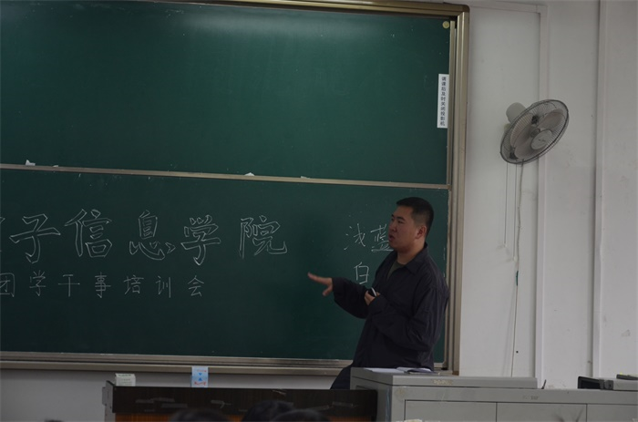 学生团委副主席姜越同学发表演说,他主要阐明了“谦逊”与“责任”的重要性,并引用拿破仑的“我来,我看,我征服”来提出经历的重要性,希望各干事能在加入团学期间,得到提升与收获。然后,副主席杨斯涵同学为大家讲解了电子团委学生会章程、制度与评分细则,并要求干事们严格遵守各规章制度。她还通过一组漫画来教予大家去相信自己,去看淡利益,去珍惜自己的工作。接着,由办公室副部长冯丹阳同学给大家讲解了关于写策划书的要求,使同学们对其有了全面和详细的了解。然后,由宣传部副部长牛通同学和黄璞同学分别给大家讲解了关于写新闻稿与微信推送的一些要求。最后,由主席王泽澎同学总结发言。他提出了时间合理安排分配的重要性,再次强调“专注”、“谦卑”与“勤勉”,并希望各干事牢记各部门的要求,互相加强交流与合作,为团学的更好发展做努力。