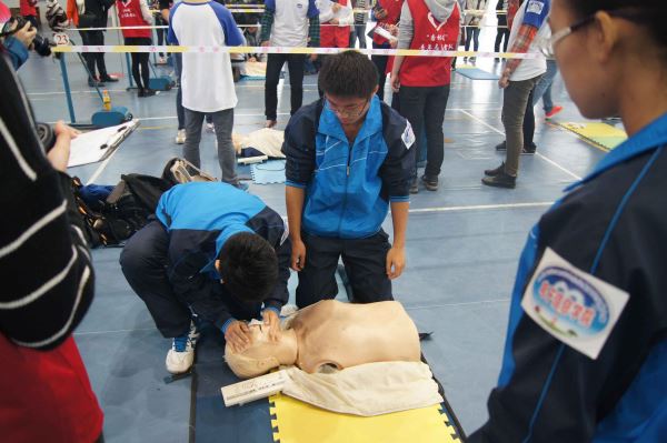 下午2点,首先李向成教授为本次比赛致辞,同时他强调了作为一名大学生,了解一些基本急救知识技能的重要性。在热烈的开场仪式后,比赛正式开始。在工作人员的安排下,各个参赛队伍有序地进行着各项比赛。活动内容丰富多彩,主办方将各种急救知识设计成了一个个场景:场景一:一名学生突发晕倒,呼之不应,紧急情况下应立即进行心肺复苏流程的两个循环;场景二:一名学生不慎撞破玻璃,右前臂被玻璃划伤,伤口长约5厘米,伴活动性出血,应对其进行加压包扎止血;场景三:一名学生下楼时不慎跌伤,右小腿畸形,肿胀、疼痛明显,右侧胸部疼痛、呼吸困难,无法直立行走,应当固定其右小腿,转运出楼道。这三个比赛项目充分考验了学生对急救知识技能的掌握,参赛队员全心投入比赛,汗流满面也顾不得擦。最后经过考验,18XXX