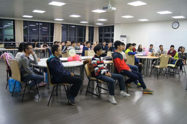 晚上7点,交流会正式开始,教室里座无虚席。首先主持人简单介绍了各位学姐学长,然后夏茂才学长发言,他介绍了18XXX