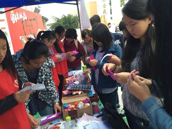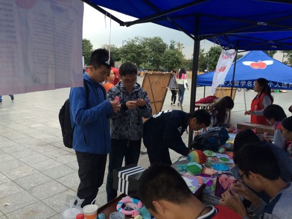 “腾飞”青年志愿者服务队与化学学院“阳光”青年志愿者服务队共同协办的“血车进江安”系列宣传活动之“千纸叠情万心聚爱”活动在青春广场完美收官。