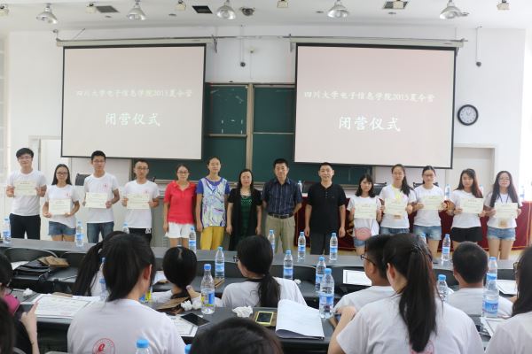 研究生院2-101教室正式举行。学院党委书记蒋斌教授、学院副院长冯国英教授、学院副书记陈笃海老师、赖华老师、计玉娟老师、吴秀玲老师、所有参加2015年夏令营的营员及志愿者参加此次闭营仪式。