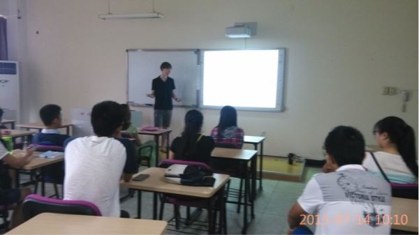 的同学与来自美国的LINUS和来自法国的JULIEN两位同学进行了第二次的CULTURE EXCHANGE(文化交流)活动。